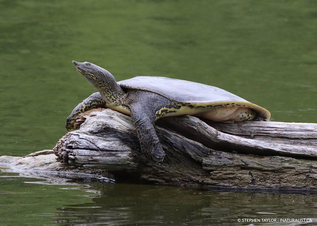 • La tortue molle à épines aime la boue associée à de nombreux rivages d’eau douce dans le sud de l’Ontario. Elles enfouissent souvent leur corps exceptionnellement plat dans la boue et utilisent leur long nez tubulaire comme tuba. Chaque année, au début de l’été, les tortues femelles recherchent des endroits sablonneux ou graveleux pour faire leur nid. Mais ces derniers temps, les sites de nidification se font rares. Les projets de stabilisation des berges et des rivages ont réduit l’habitat de la tortue molle. Ces projets sont réalisés partout, y compris dans les zones urbaines où des mesures d’atténuation de l’érosion empêchent les tortues d’y accéder. Ces mesures comprennent des murs de soutènement en béton, l’enrochement de gros blocs et des gabions. Ce type de stabilisation des berges empêche non seulement les tortues de circuler dans la plupart des cas, mais il peut aussi provoquer des flux d’eau non naturels et modifier la dispersion des sédiments, ce qui risque d’altérer encore plus l’habitat. L’endiguement des berges et d’autres menaces ont placé la tortue molle sur la liste fédérale des espèces en voie de disparition. Mais ça n’a pas à être le cas. Il existe d’autres techniques de stabilisation des berges qui ne nuisent pas aux tortues.