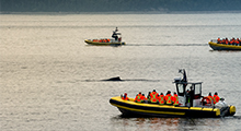 The least obtrusive way to watch whales is from land. Some areas around the St. Lawrence provide great viewing opportunities. Whale watching from land means less stress and disturbance to whales and other marine mammals, and depending on the area – they may come close enough that you won’t even need binoculars!