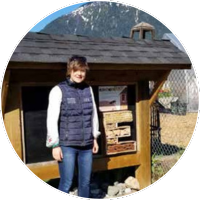 Verena built insect hotels with a local classroom using recycled wood. Verena created a scavenger hunt for the public to find and learn about the importance of native pollinators and their habitat.