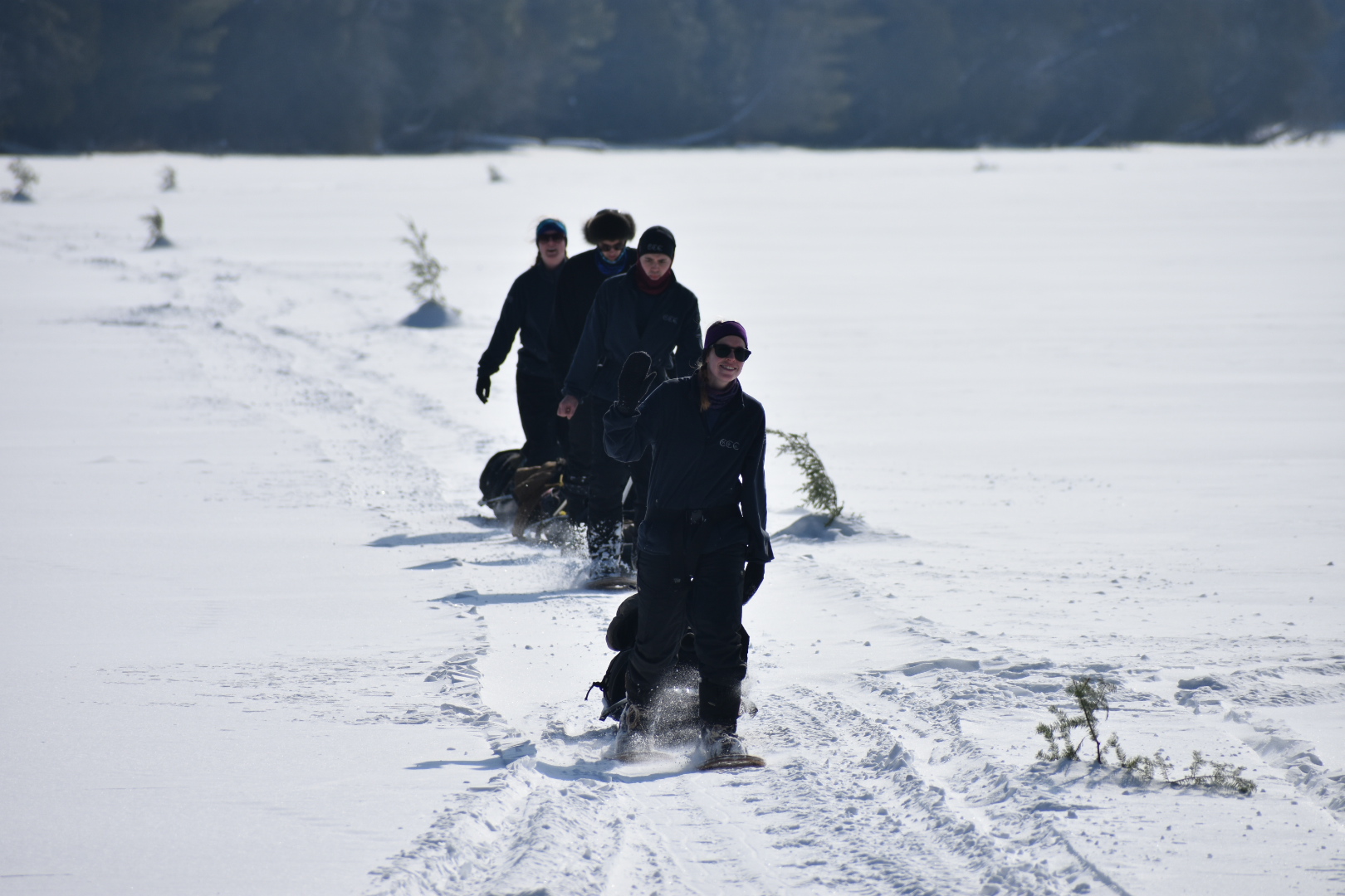 Group 1 meet in Huntsville, Ontario for two weeks of training with the Canadian Wildlife Federation. They travel to remote areas of Algonquin Park via sled dogs and snowshoes and experience winter camping in the frozen mixed and hardwood forest.