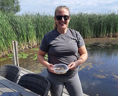 “Over the last nine months I have had the opportunity to visit nine out of 10 Canadian provinces,” said Shannon Anderson, a Canadian Conservation Corps graduate from New Brunswick. “I have climbed my first real mountain. I have touched the Atlantic and the Pacific oceans. I have handed out plants to teachers in Calgary. I have participated in youth service and leadership talks in Toronto. I have chaperoned a youth trip to Northern British Colombia. I have been able to see 25 km across prairie and the largest skies in the world. I have helped create over 11 million walleye and 100,000 splake trout. I have tracked northern pike with a hydrophone. I have taken density of oxygen readings. I have helped film educational videos to raise awareness of aquatic invasive species. I have visited a sharp-tailed grouse lek. I have watched bison roam on some of the last remaining native prairie in the world. I have met people and created invaluable friendships from all over Canada. I have had a lot of fun.”