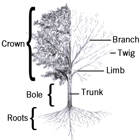 A large and tall woody plant usually having one supporting stem or trunk. Branching often begins farther up the trunk.