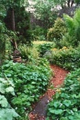 Rosemary takes great pleasure in observing her visitors. While some would scoff at animal scat or nibblings, Rosemary chooses to delight in observing, learning and being able to help wildlife — rarely are her plants badly damaged, although an opossum did take out a small yew one winter. And raccoons, a bane to some, are seen as valuable slug and snail predators. This lighthearted attitude also applies to her gardening — if something doesn’t work in one spot, then it’s an opportunity to try something else!