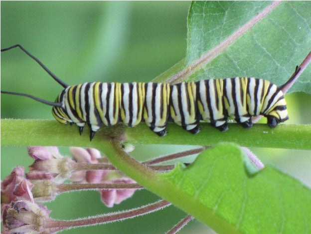 Caterpillars are an important food source for birds that need to feed their hungry young. Various mammals and predatory insects also eat them. Being low on the food chain has caused caterpillars to adapt in various ways to avoid being eaten. Some caterpillars, such as the monarch, feed on plants that contain poisonous substances. This makes them distasteful to most birds and other animals. They advertise this fact by sporting bright colours to warn potential predators.