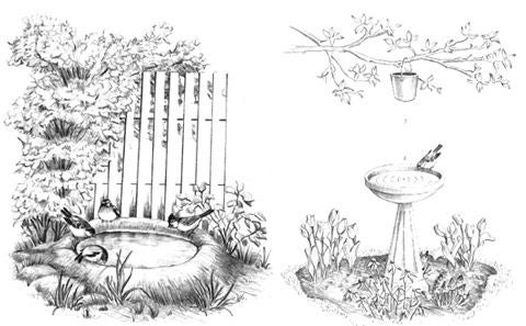 - Wildlife can often be lured by the tempting sound of dripping water. Try rigging a recycled plastic or metal container from a branch just over the bath. An old coffee can is perfect. Paint it black, dull green, or brown - birds are suspicious of bright colours - and make a tiny hole in the bottom.