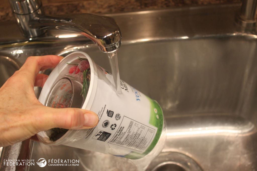 Natural items like fresh or frozen cranberries and evergreens. Fresh or frozen cranberries from the store are attractive as are other berries that you might have growing on bushes in your garden. (You won’t need many, so the birds will end up getting most of them). You could also slice an orange or clementine and use that for added colour.