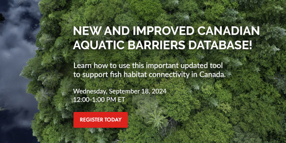 June 14, 2021, 12:00 – 1:00 p.m. ET. A Tool to Support Fish Passage and Connectivity Work in Canada. Please join the Canadian Wildlife Federation as we introduce to you the Canadian Aquatic Barriers Database (CABD) — an open web tool to identify, explore and map potential barriers to aquatic connectivity. You will learn how the CABD will support policy and reporting, restoration planning and prioritization, infrastructure management, research and education and outreach.