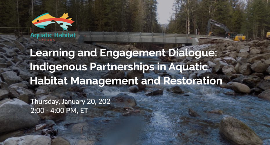 This event is hosted by Aquatic Habitat Canada (AHC), a national network supporting aquatic habitat protection and restoration. For this event, we have the pleasure of hosting expert speakers from multiple sectors to present their knowledge on the topic, Indigenous Perspectives in Aquatic Habitat Management and Restoration, and illustrate examples of Indigenous involvement and relationship-building to ensure impactful outcomes in their work. Presentations will highlight Indigenous-led and co-led initiatives and explore how Indigenous values are incorporated in aquatic habitat science. The webinar will also include an open panel discussion and a Q&A period. Our panel speakers include: • Dr. Catherine Febria (Healthy Headwaters Lab) • Jennifer Sylliboy (Unama'ki Institute of Natural Resources) • Kathleen Ryan (Bruce Power) This outreach event is part of AHC’s Learning & Engagement Dialogue webinar series, and is intended to be informative and educational, while allowing for public engagement. We welcome all perspectives and experiences at the event and hope to host a learning forum for our community. We look forward to seeing you there.