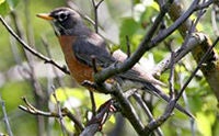 Males are not only more vocal than females, but also slightly larger and more brightly coloured. Adult American robins have grey-brown backs, characteristic reddish breasts, white bellies, white chins, yellow bills and throats with dark streaks. Juveniles have dark speckles on their backs and on their cinnamon-coloured breasts.