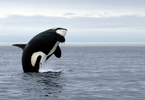 Without a doubt, the killer whale is one of the most distinctive marine mammals in the world. Its size — seven to nine metres long and between four and five tones in weight — and its striking black-and-white colouring, and long, rounded body make it unmistakable.