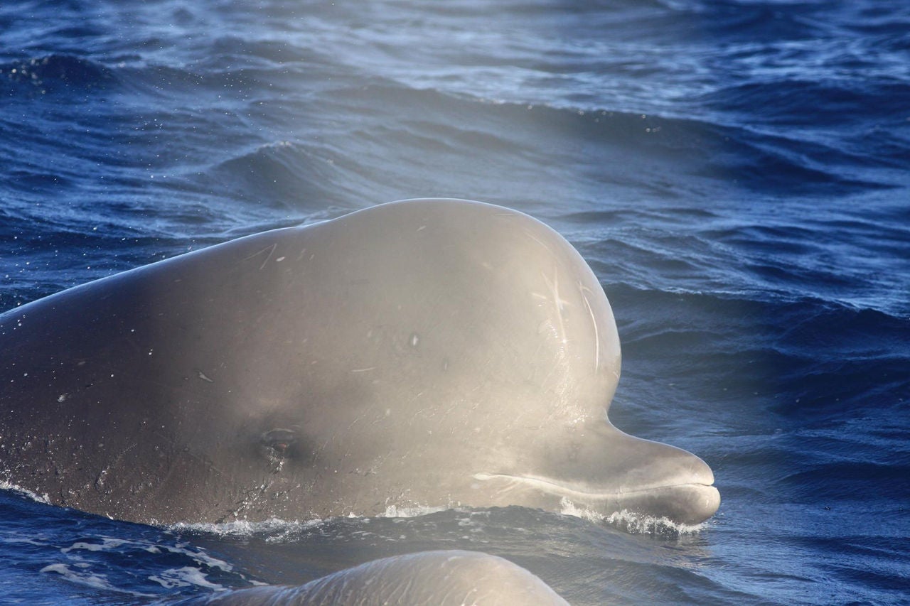 - Bulbous forehead with a dolphin-like beak, and robust cylindrical body.