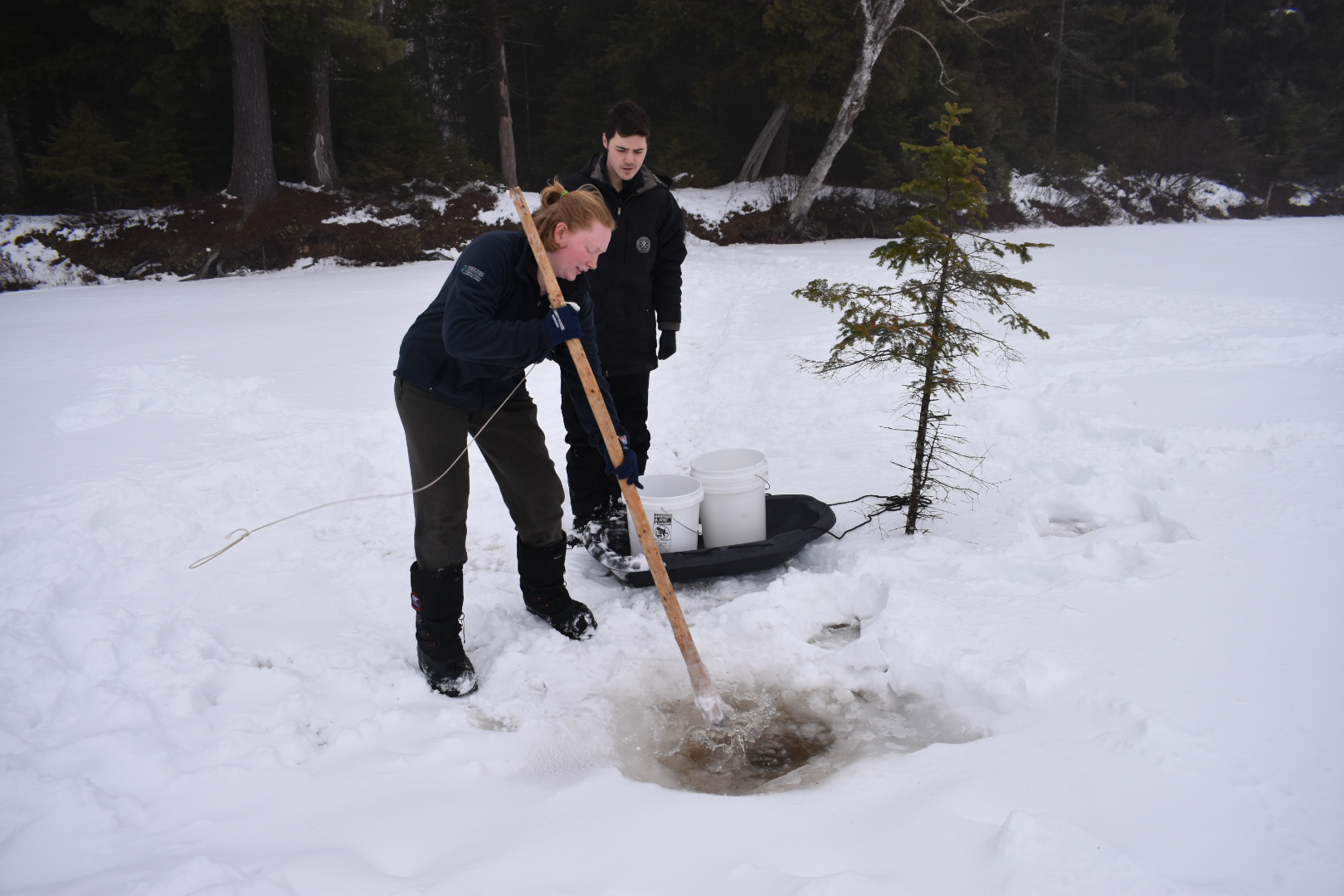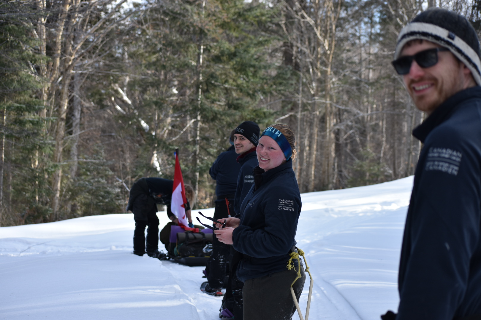 Les membres du groupe 1 se sont rencontrés à Huntsville en Ontario pour prendre part à une formation de deux semaines de la Fédération canadienne de la faune. Ils se sont déplacés en traîneaux à chiens et en raquettes vers les régions éloignées du parc Algonquin et ont fait l’expérience du camping d’hiver dans une forêt mixte et caducifoliée glaciale.
