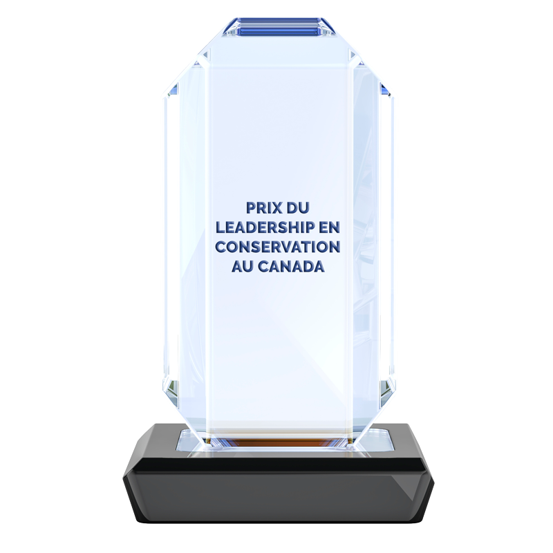 Réservé aux individus à l’incidence et au dévouement exceptionnels, le Prix du leadership en conservation au Canada représente la plus grande distinction remise à ceux et celles dont le travail a profondément fait progresser la conservation de la faune et des ressources naturelles du Canada. Les candidats et candidates admissibles peuvent provenir de tous les secteurs, mais doivent faire preuve de façon soutenue de leadership, d’intégrité et de réalisations mesurables au moyen d’actions efficaces et responsables contribuant à la conservation, à l’amélioration et à l’atteinte d’un avenir écologique pour le Canada.