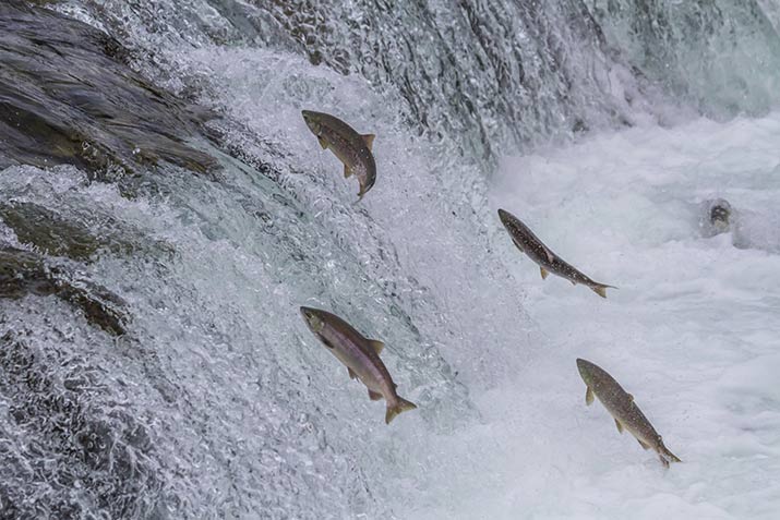 Le saumon quinnat adulte nage parfois jusqu’à 3 200 km à contre-courant pour aller frayer – Il peut faire plus de 50 km par jour!