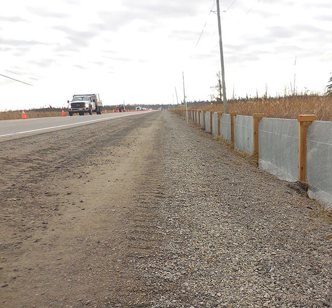 - Des clôtures de protection de la faune furent posées à quatre des pires points chauds en matière de mortalité routière que nous avions identifiés.