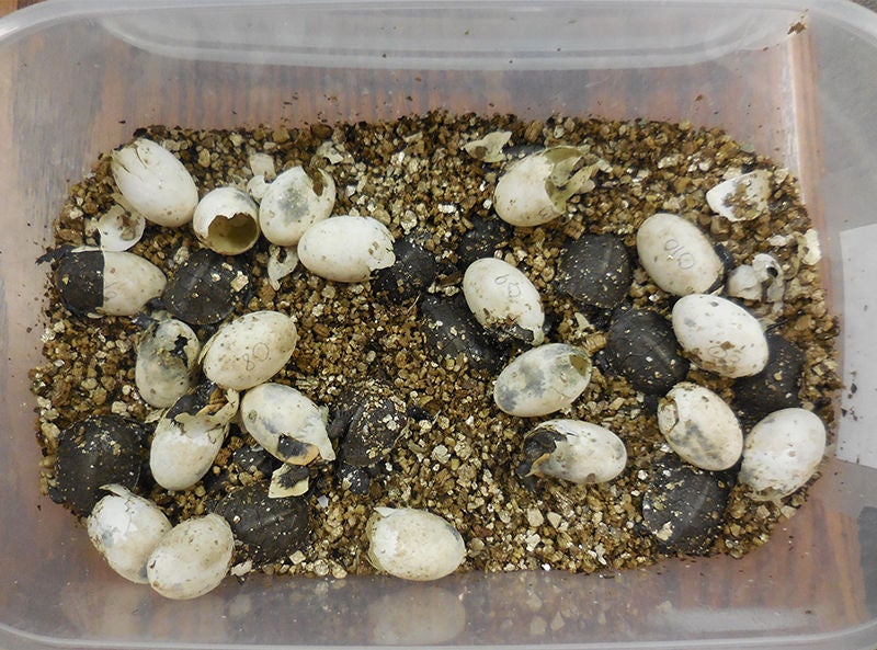 - Chaque été, nous collectons et faisons incuber des œufs de tortues dans le but d’accroître les populations sauvages.