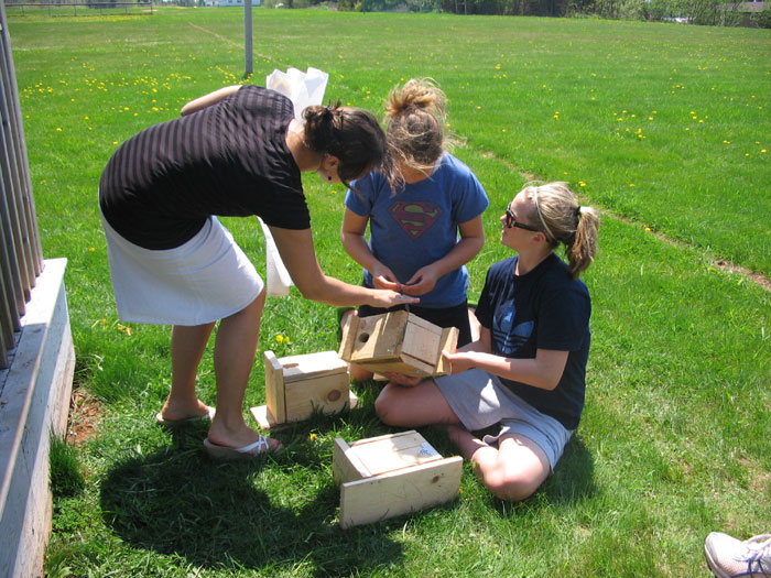 « Le camp d’été s’est déroulé en juillet… Durant les trois semaines du camp ayant pour thème « La faune : notre richesse, notre responsabilité! », les 56 participants ont eu la chance d’en apprendre davantage sur les oiseaux non-migrateurs et de construire des nichoirs afin de rendre plus attrayante la cour arrière des jeunes campeurs… Ils ont été invités à l’apporter à la maison pour en faire l'installation dans leurs cours arrière et sensibiliser leurs parents et entourages à l’importance de l’habitat de la faune en milieu urbain. De cette façon, nous avons contribué à améliorer l’habitat faunique au Nouveau-Brunswick. »