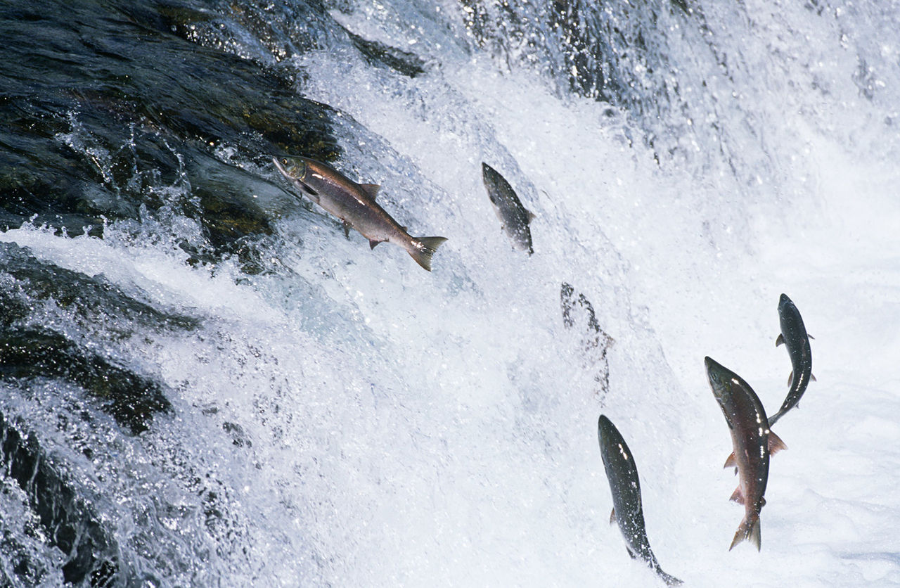 Chaque année, les peuples autochtones guettaient le retour des saumons en eau douce et le célébraient. Certains le célèbrent toujours, aux côtés des populations issues de nombreuses cultures qui habitent l'ouest du Canada aujourd'hui! Et ils ne sont pas les seuls. Les saumons du Pacifique fournissent de la nourriture à une grande diversité d'espèces, parmi lesquelles les loutres de rivière, les phoques, les otaries, les ours, les loups et les oiseaux. Les grizzlys sont également des prédateurs bien connus des saumons, qu'ils embusquent dans les eaux peu profondes. Les carcasses de saumons morts fournissent même des engrais et des éléments nutritifs aux plantes environnantes, et les poissons transportés à l'intérieur des terres par les carnivores et les charognards contribuent à répandre ces substances dans d'autres parties de la forêt. Les saumons sont si importants pour les écosystèmes de la côte Ouest que les écologistes les considèrent comme une « espèce clé »!