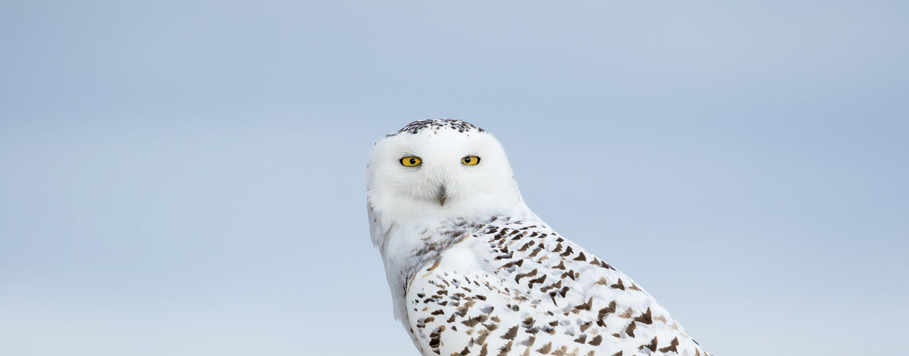 Cet oiseau est sûrement admiré à ce point parce qu’il est un maître de l’adaptation et peut survivre dans un environnement aussi rude que l’extrême Arctique l’hiver, où les températures peuvent atteindre les -50˚ Celsius. Son épais plumage blanc lui sert de camouflage et d’isolant, jusqu’au bout des doigts. Son sens de l’ouï et de la vue (pensez à ses saisissants yeux jaunes) très développés font de lui un excellent chasseur au cœur de l’hiver, pouvant détecter le moindre mouvement d’une proie, même sous la neige. Le harfang des neiges peut non seulement survivre dans la toundra hivernale, mais peut aussi s’adapter à la luminosité continue de l’été septentrional. Il chasse aussi bien le jour que la nuit, contrairement à la plupart des autres strigidés.