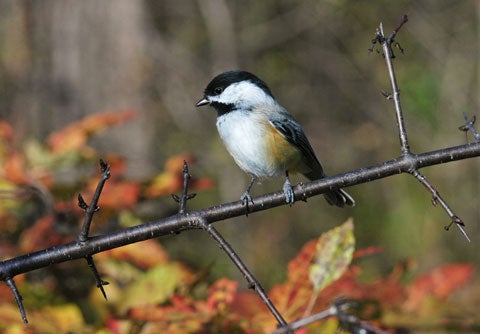 La mésange à tête noire (Poecile atricapilla) est une autre espèce qui se prépare en vue des températures hivernales en faisant des réserves de nourriture. À la fin de l’été, vous verrez peut-être la mésange à tête noire accumuler de la nourriture dans des arbres ou derrière des morceaux d’écorce. La nourriture est alors abondante et la mésange s’assure d’avoir des graines de fruits, des baies et des insectes; elle engloutit des centaines d’aliments par jour. Les petits oiseaux, à l’instar de la mésange à tête noire, consomment une grande quantité de nourriture qui, si elle n’est pas utilisée pour son énergie, est transformée en réserves de gras. Ces réserves de gras donnent à la mésange à tête noire la capacité de survivre aux longues nuits glaciales de l’hiver. Plusieurs dépendent aussi des graines et de la graisse des mangeoires pour passer à travers l’hiver. Si vous désirez nourrir les oiseaux, rappelez-vous de garnir vos mangeoires tout au long de l’hiver et jusqu’à ce que le printemps soit bien avancé.