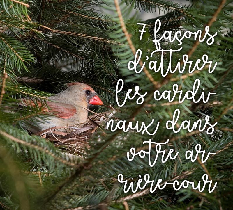 Les cardinaux changent souvent leur aire de nidification. Ils élèveront une première couvée dans de denses conifères en avril ou mai. Mais ils abandonneront vraisemblablement ce premier endroit pour avoir une autre couvée. Il est donc important d’avoir une variété d’épais arbustes et de conifères pour leur fournir divers endroits pour faire leur nid.