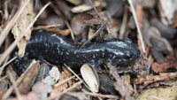 Quoique discrète, cette petite créature pourrait bien vivre dans votre cour. Il s’agit de la salamandre à points bleus, et il est facile de la reconnaître avec son corps noir, irrégulièrement tacheté et ses membres, côtés, ventre et queue bleu pâle. La salamandre à points bleus adulte mesure en moyenne de 10 à 14 centimètres en longueur de la tête à la queue, cette dernière formant environ 40% de sa longueur totale. Les femelles sont typiquement plus grandes que les mâles et ont une queue légèrement moins longue.