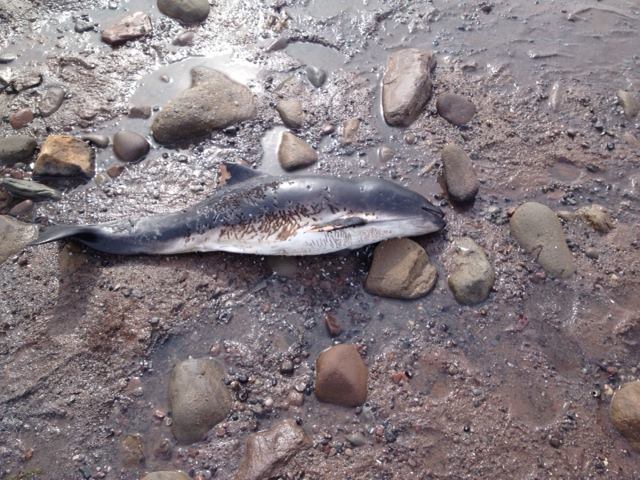 - Son corps est soit brun foncé ou gris-noir, avec un ventre blanc et une bande foncée qui s’étire du coin de la bouche jusqu’à la nageoire pectorale.