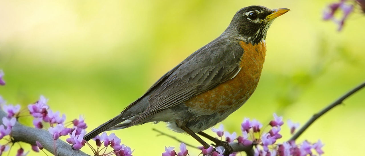 Un merle sur une branche en fleurs