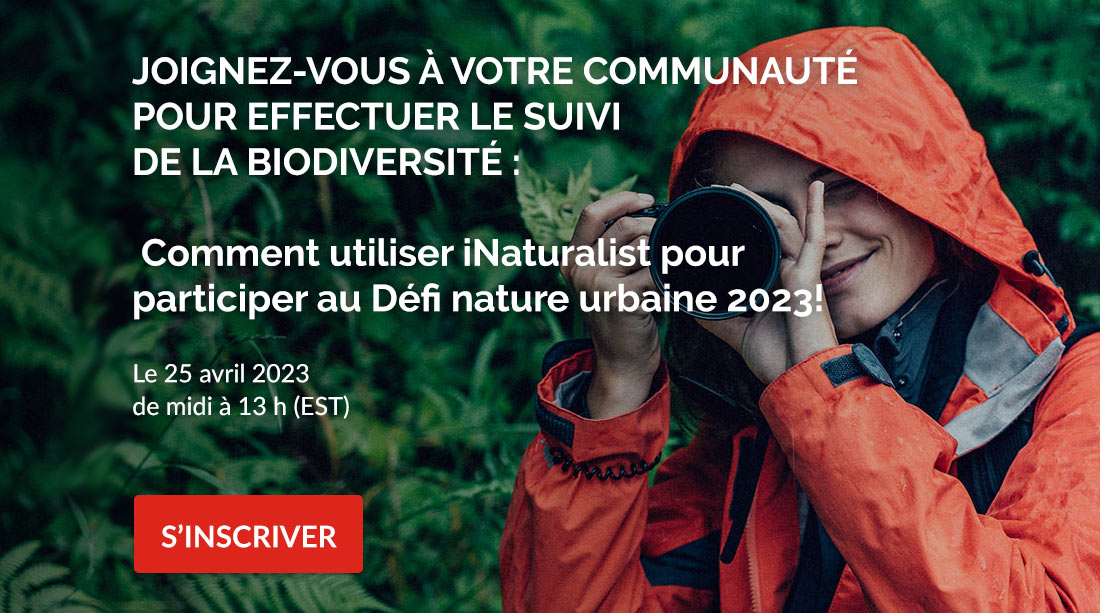 Le 25 avril, de midi à 13 h (EST). Apprenez comment aider votre ville à rivaliser sur la scène mondiale dans le cadre du Défi nature urbaine 2023 : 42 villes du Canada et plus de 400 autres villes du monde entier s’affrontent dans le cadre de ce défi amical pour sauvegarder la biodiversité. Dans le cadre de ce webinaire, James Pagé, de la FCF, expliquera comment contribuer à cet événement mondial annuel en consignant un maximum de plantes et d’animaux à l’aide de la plateforme iNaturalist Canada. Si vous prenez des photos, vous pouvez contribuer à la conservation de la nature : découvrez comment, à l’approche du Défi nature urbaine. Vous n’habitez pas dans une ville participante? Pas de problème, vous pouvez toujours contribuer à iNaturalist depuis n’importe où et à tout moment de l’année! De plus, nous avons besoin de l’aide de tous pour identifier les espèces qui ont été trouvées, même s’il s’agit d’espèces aussi communes que des bernaches du Canada.